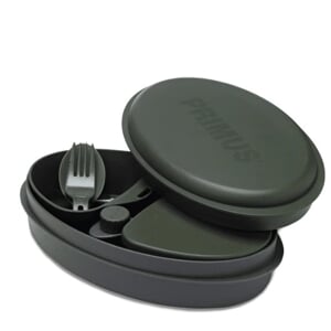 Jídelní set PRIMUS je dokonalá sada na servírování a cestování se vším, co potřebujete k tomu, abyste si své oblíbené jídlo připravili a dokonale vychutnali venku v přírodě, ale šikne se i během pracovního dne. Oddělte jednotlivé položky menu a uložte si ingredience stranou. Tato osmidílná sada obsahuje dvě hluboké misky, menší úložnou nádobu s pevně přiléhajícím víkem, dózu na tři druhy koření, malou nádobu na tekutiny (např.olivový olej...), hrnek, skládací spork (lžíce s vidličkou dohromady) a prkénko na krájení, cedník a struhadlo v jednom. K dispozici ve třech barvách, černé, červené a tmavě zelené. Není určeno pro servírování horkých potravin a nápojů.
