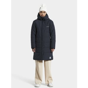 Dámský, zateplený, prošívaný kabát o délce nad kolena. Rovný střih, dole malinko do A tvaru. Naprosto odolný větru a částečně i vodě.